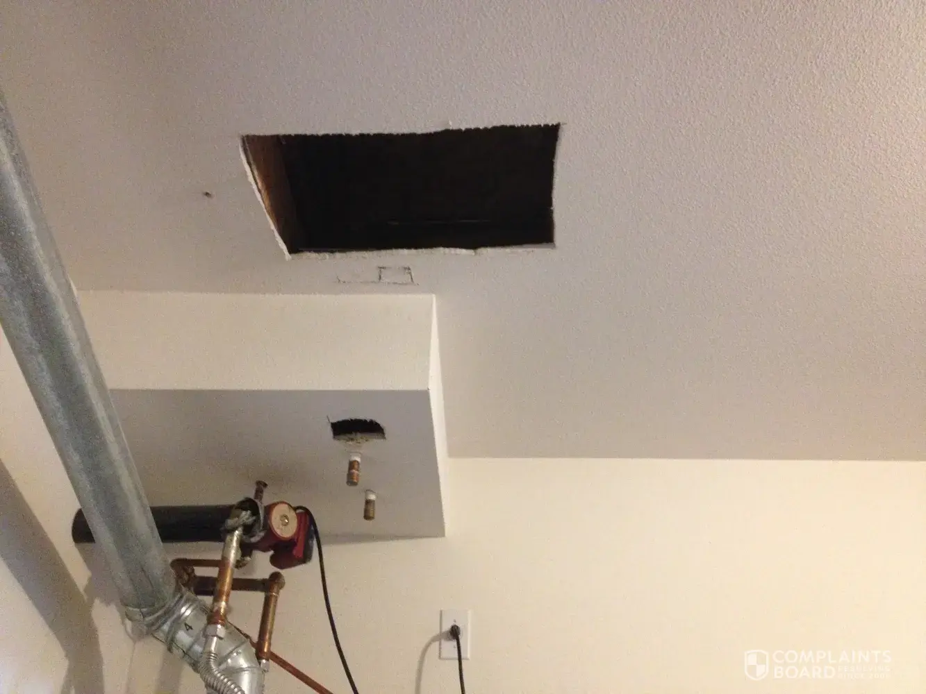 I would like to file a complaint/request for repair regarding some items that were not properly done in my home when built. There is a hole in my roof! There are water stains in the garage, the wall needs to be removed and checked for mold. I'd like this documented and repaired prior to the expiration of my one year warranty.