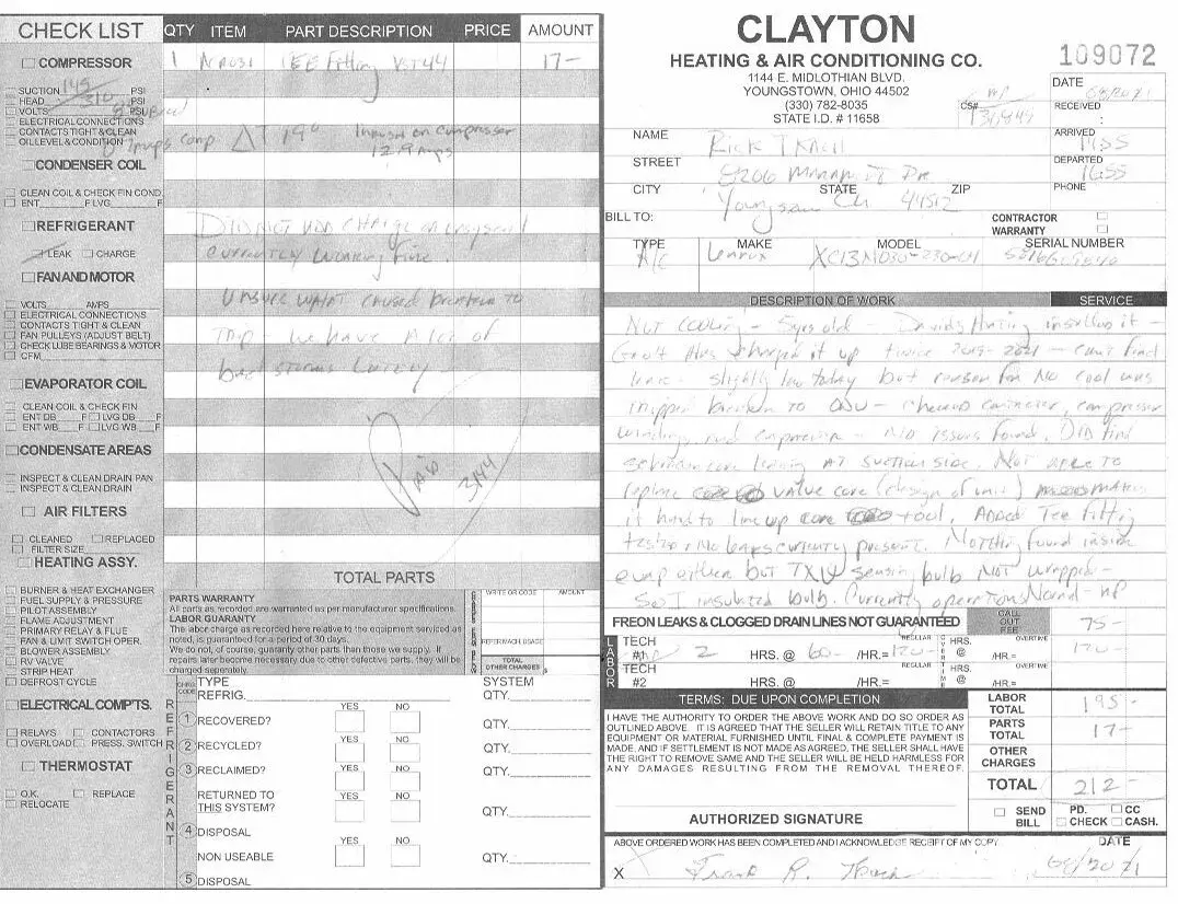 Finally, in early May 2022, we had another technician examine the unit. He attempted to fix the freon leak, but told us if this did not work, he recommended replacing the air system. In June, we had no choice but to replace the unit.