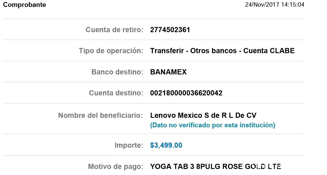 I was calling to lenovo pone, 018003-LENOVO (536686) and nobody answer since 11/24! I called minimum 20 times in different hours. Also I sent 4 emails to: Lenovo e-Commerce Mexico [protected]@lenovo.com, I attached the bank receipt, no answer up today.