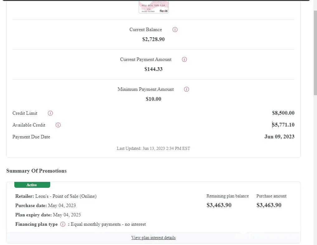 I ordered a sectional online via their Flexiti payment plan option. Upon arrival to pick up the sectional, we opted for a cheaper sectional that had cheaper monthly plans. Finance informed me they would correct the purchase price amount on my Flexiti account. They did not. I had to phone 2 weeks later to inform them. Then after correcting it, I see they...
