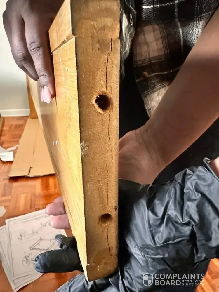 Dear Leon's Customer service I hope this email finds you well. I recently purchased a wooden oak bed frame from your store. Upon inspection, my friends and l discovered a crack in one of the long panels, a huge amount of wood dust was coming out from the holes. the holes from the long panels appeared to be big. Overall, the bed frame appears to have been...