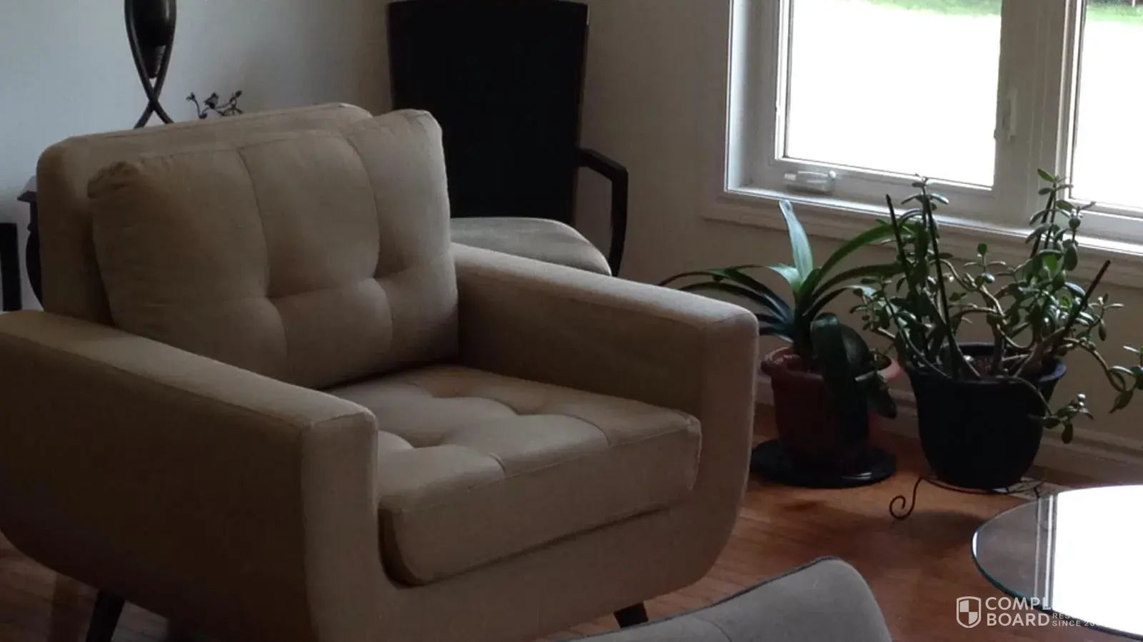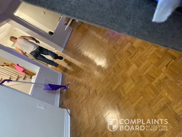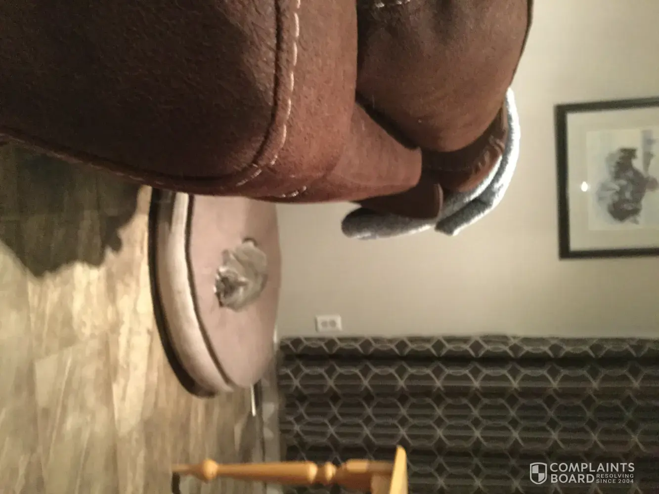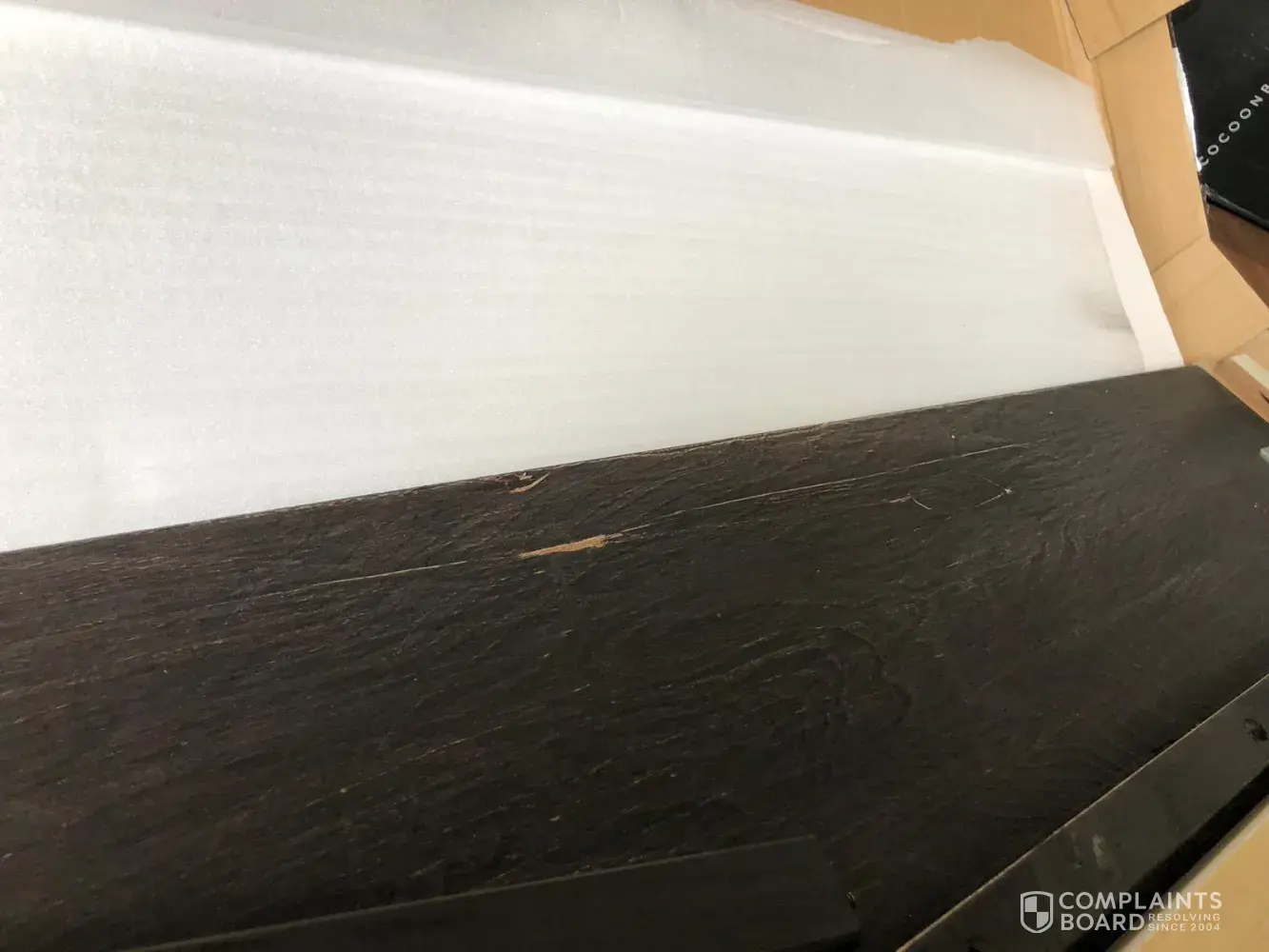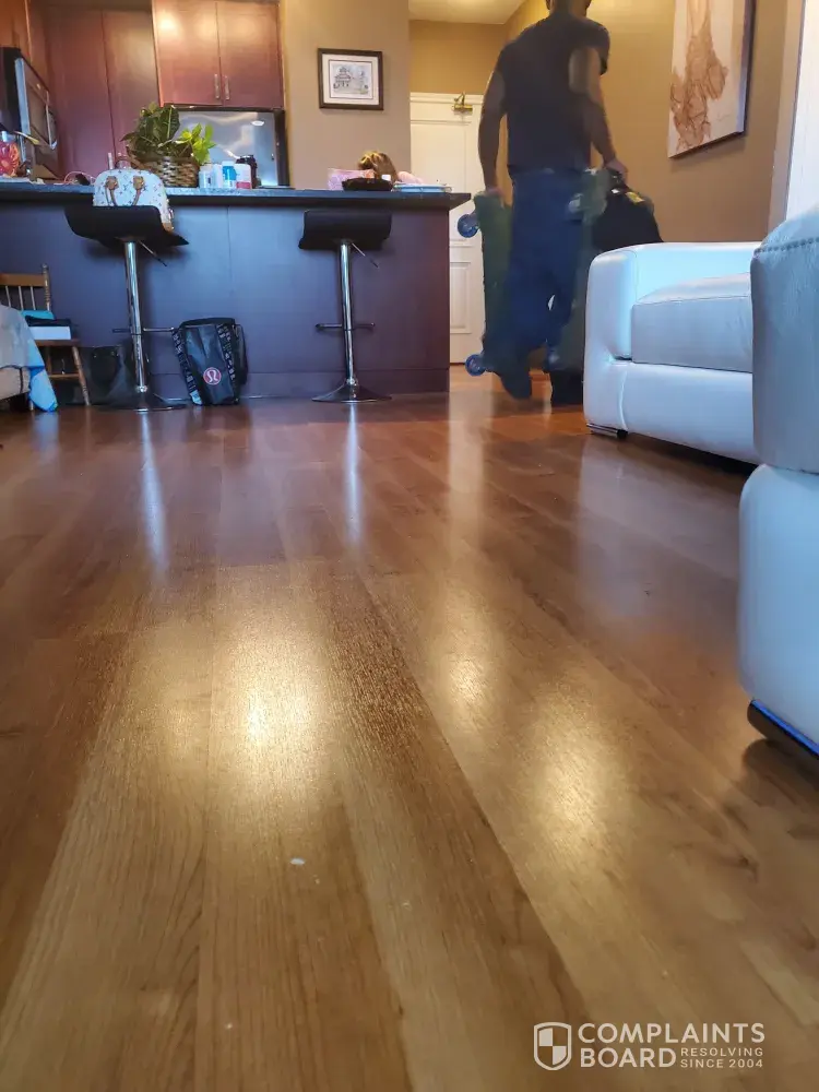 The delivery crew accidentally dropped the new couch damaging our hardwood floor during the setup process on Saturday July 13, 2019.