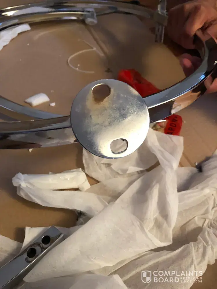 Coffee table and end table came all rusted, scratched and bent. They are refusing a refund.