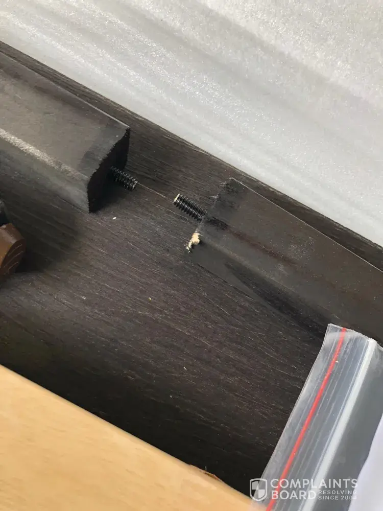 The bedroom set came with broken and chipped away pieces of wood. We complained 4 times in 2 days, still no reply or response. We have been waiting on their so-called Technician to come to see it.
