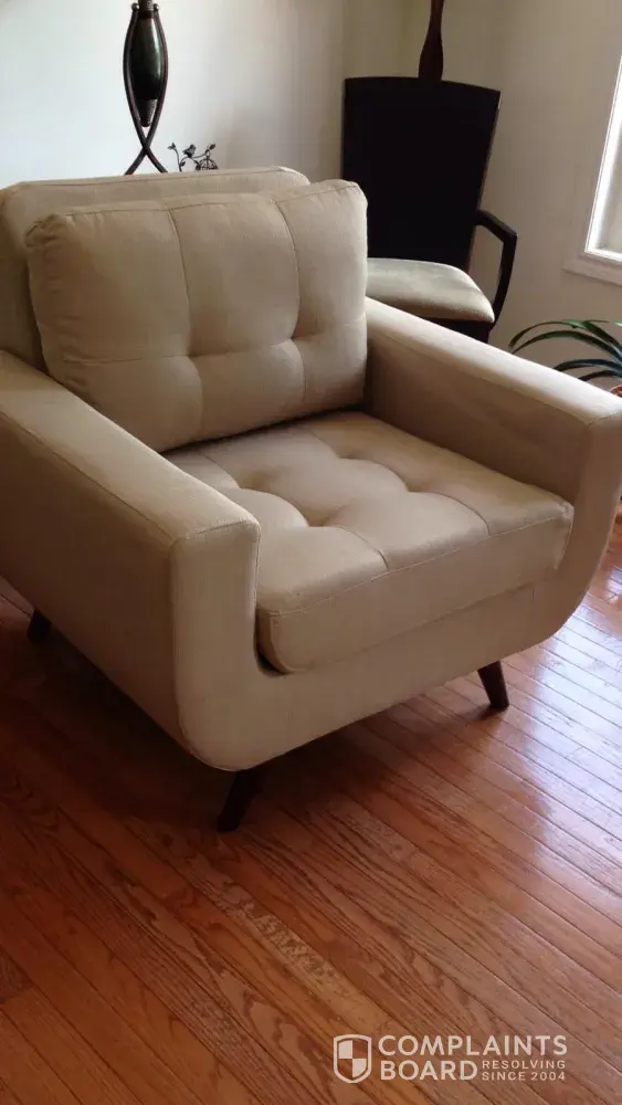 The couch we ordered was Italian Leather which came with pen scratches and black stains on a white couch. We complained 4 times in 2 days, still no reply or response.