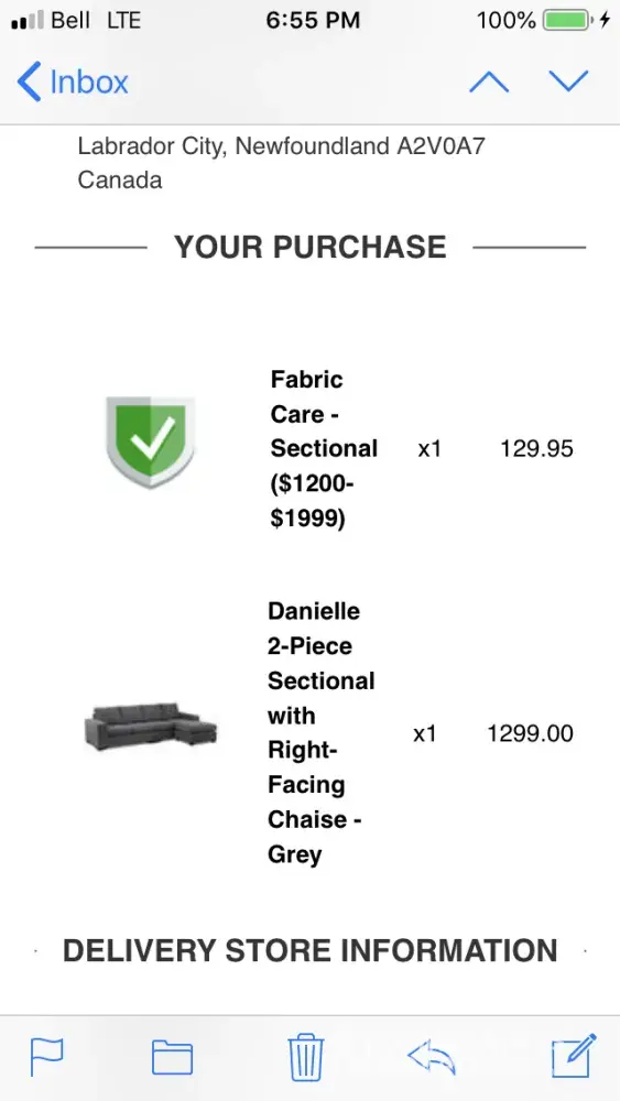 Leon's Furniture delivery of paid items