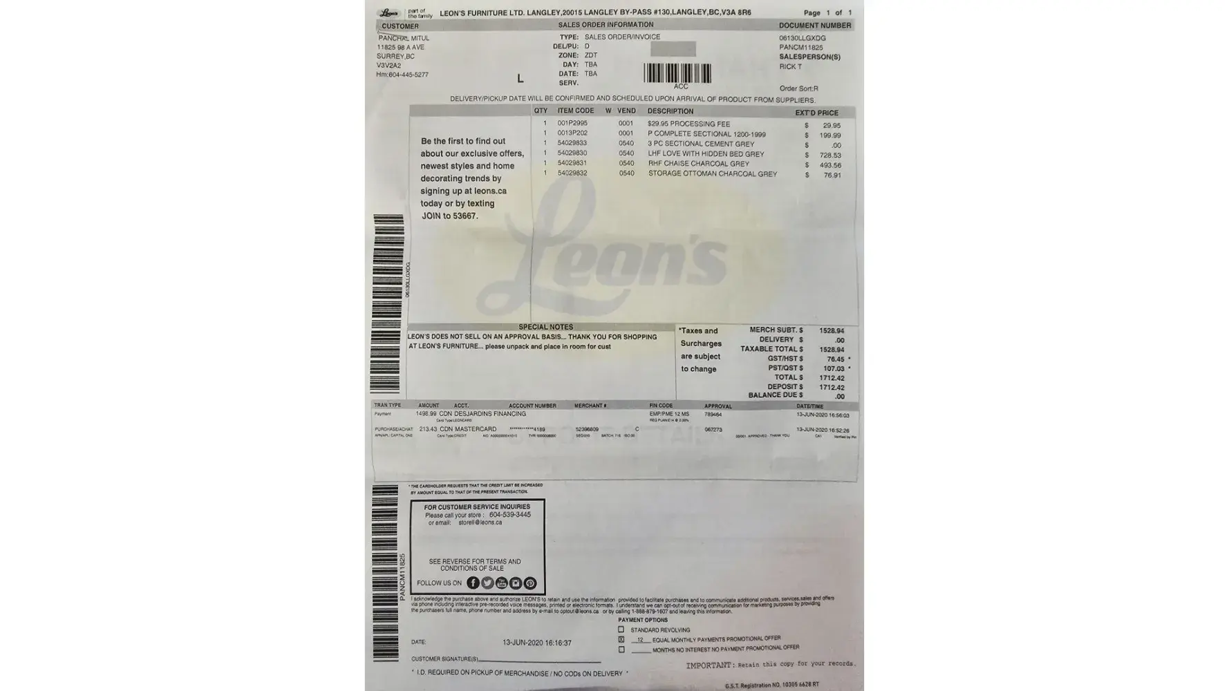 Leons 13730-140st Edmonton AB. I would like to start with apologizing, for my anger as well as my deep disappointment with leons... On feb-27/2023, 15:20:21 we had purchased a sectional and a bed frame.