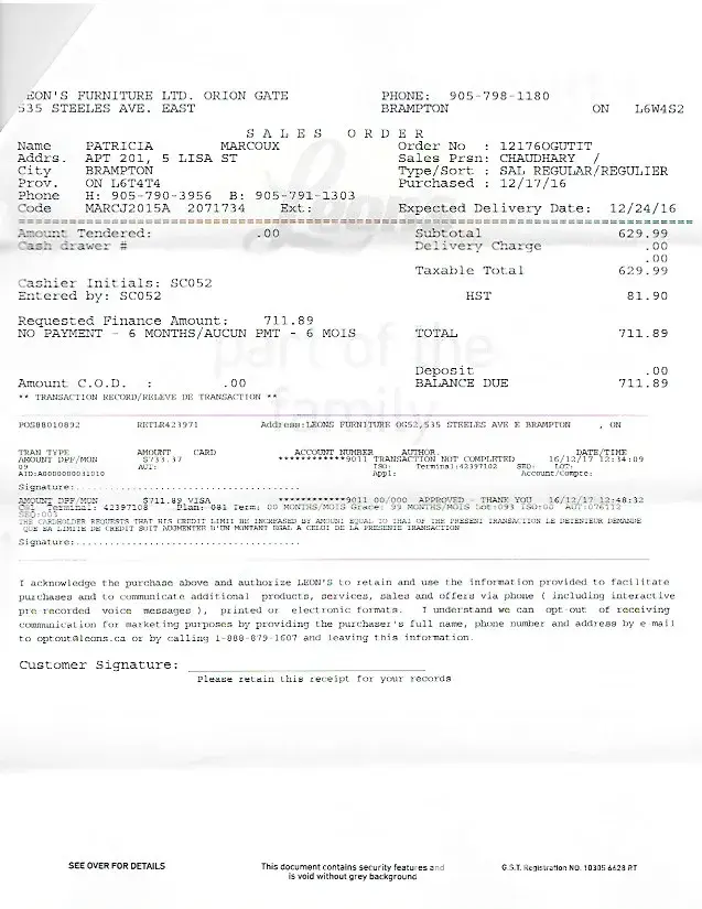 I have been waiting for Boxing days sales since I get my new home possession in June 2016. Hence on the Boxing day 26th December 2016 I reach to your Calgary Leon’s store early in the morning at 8AM to get the best deal. I checked the furniture on the floor which I wanted and talked to the sale's representative for Boxing day sale. He mentioned that you will get 15% off on any furniture you buy today available on the floor. His offer looked very convincing to me. I gave my all the documents so that Leon's should check my credit and eligible me for furniture purchase. Then I roam around the store and found the Sofa, love seat and Coffee table fits into my budget with ongoing discount. Ali Siddiqi (sale's representative at Leon’s Calgary) has been great convincing me to buy furniture. I also bought Samsung TV and Wall Mount as well. He also mentioned that there will be no discount on electronics, I agreed. I went on the payment counter and complete the process for finance and paid all the mandatory fees mentioned by Ali. And went home.