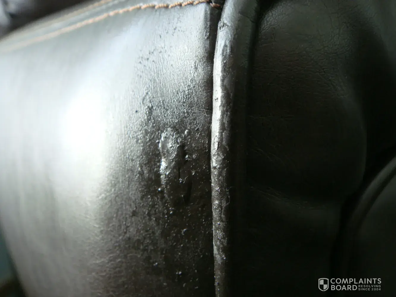 SKOR... my "disability" (health problems) are none of your business. How this has affected my health is also none of your business. I do not know how this damage occurred. All I know is I did not do it. When I purchased it, I examined the pieces carefully. (Hence the expression "fine tooth comb".) How many times do I have to check things when I believed that they would take good care of my purchase? The delivery was supervised by myself and a friend and there was no place this damage could have been done in my home. There were no problems and I was so pleased with the handling of the furniture by the delivery men and the little extra care they took by laying down some sort of material for them to walk on in the house beforehand. The delivery men put the pieces where I wanted and because the chair was in a corner I didn't notice this right away. It was just a little over a week. I am an honest woman and unfortunately too trusting. I do not need the harassment from people like you who only want to interfere into something that is none of your business. My original post was done to warn others and hopefully bring this to the attention of the company. This has been accomplished, but not over. I sincerely hope this has a happy ending. If it does, I certainly will post that.