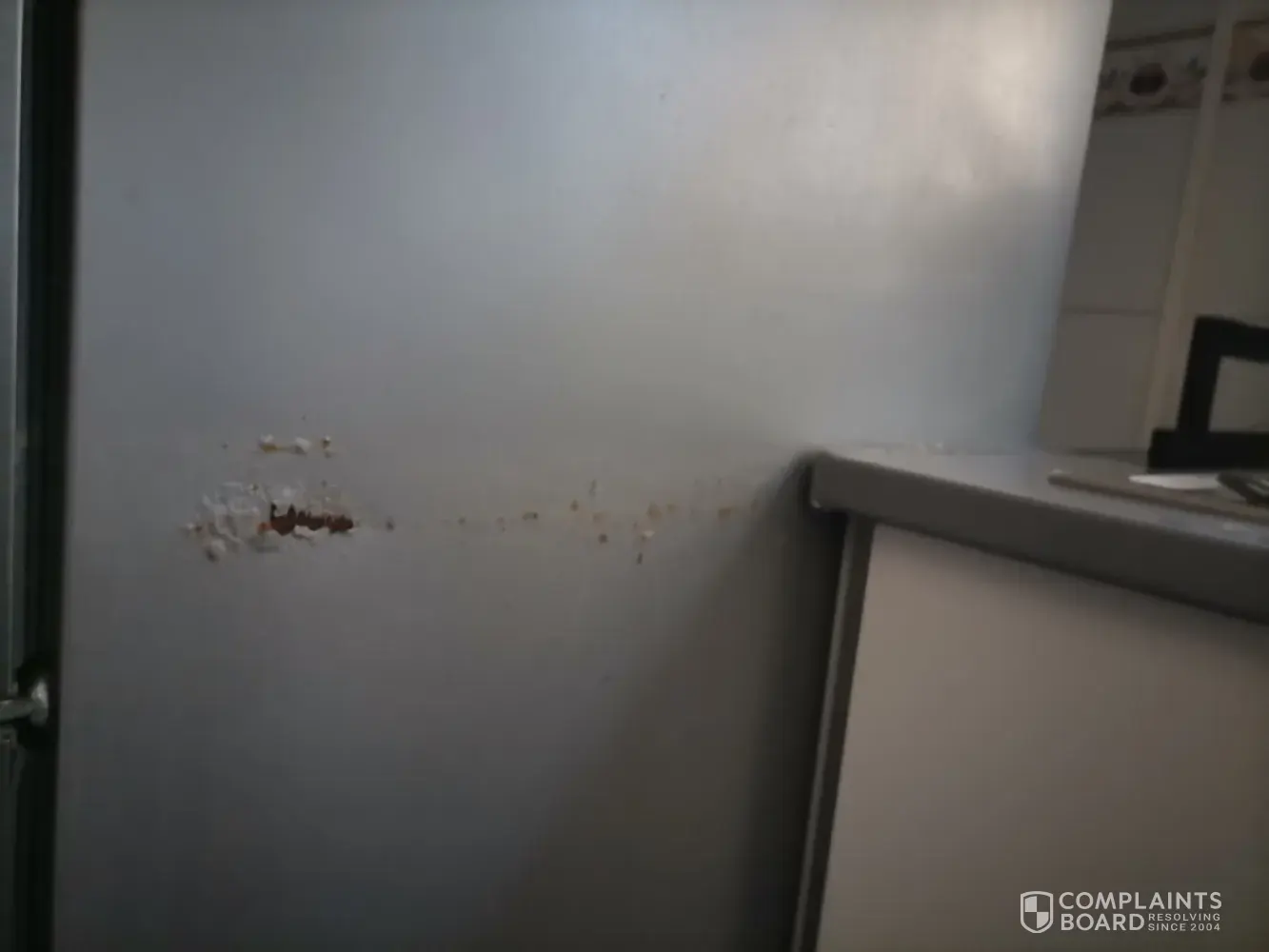 10/05/2021. Members of staff visited and inspected the kitchen and freezer fittings, he stated that the freezer was fitted in a too small space and the kitchen top needed to be replaced and the space made bigger for the freezer, also that he would contact Beko to find out how much it would cost to replace the damage side panel.