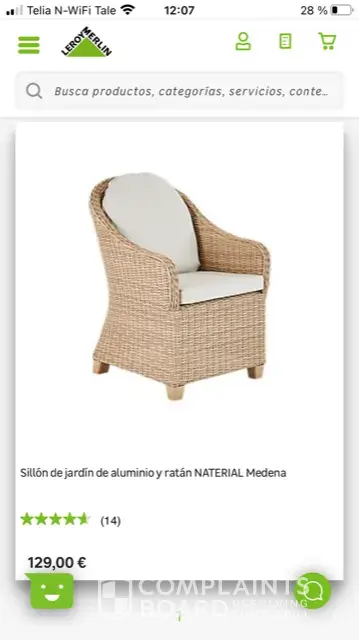 Leroy Merlin Paid for 2 medena jardin chairs at leroy merlin marbella for home del but not got them. I want my money back