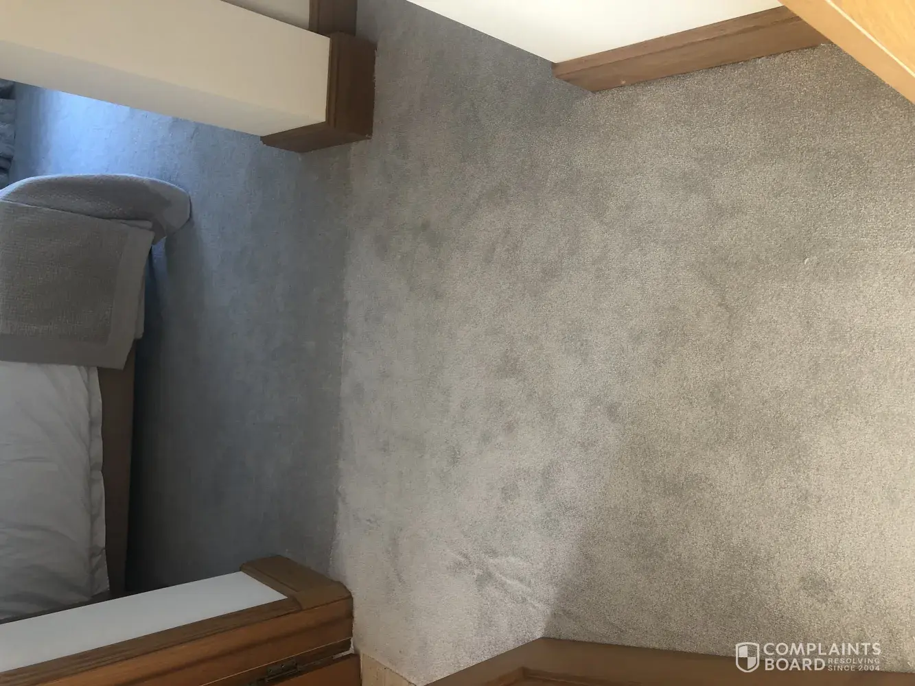 The installer has not done a good job with joins and the placement of the joins within the room. There is a section that has been pieced together with small bits of carpet like a patchwork.