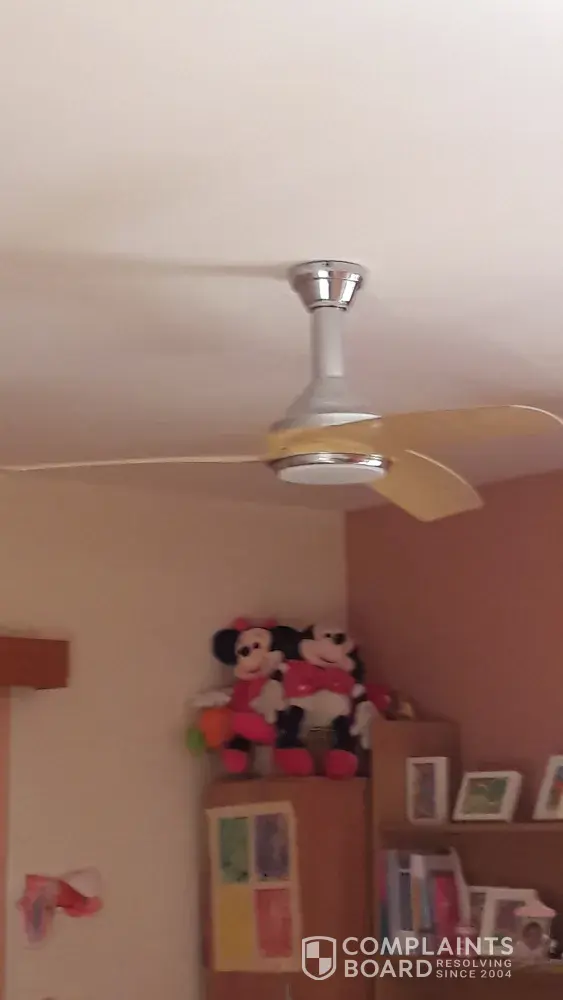 We bought a ceiling fan with a lamp, with 5 year warranty on 23/6/2017 from Leroy Merlin (Cyprus) and the placement was done by a technician of the store . A month ago the fan broke down and a technician of Leroy Merlin replaced the remote control and the sensor without charge. Ten days ago the fan was completely broken. After contacting the store, twice, they contacted us asking for 50 euros so as a technician repair it. We have suffered twice and since is in warranty the product we request for a replacement.