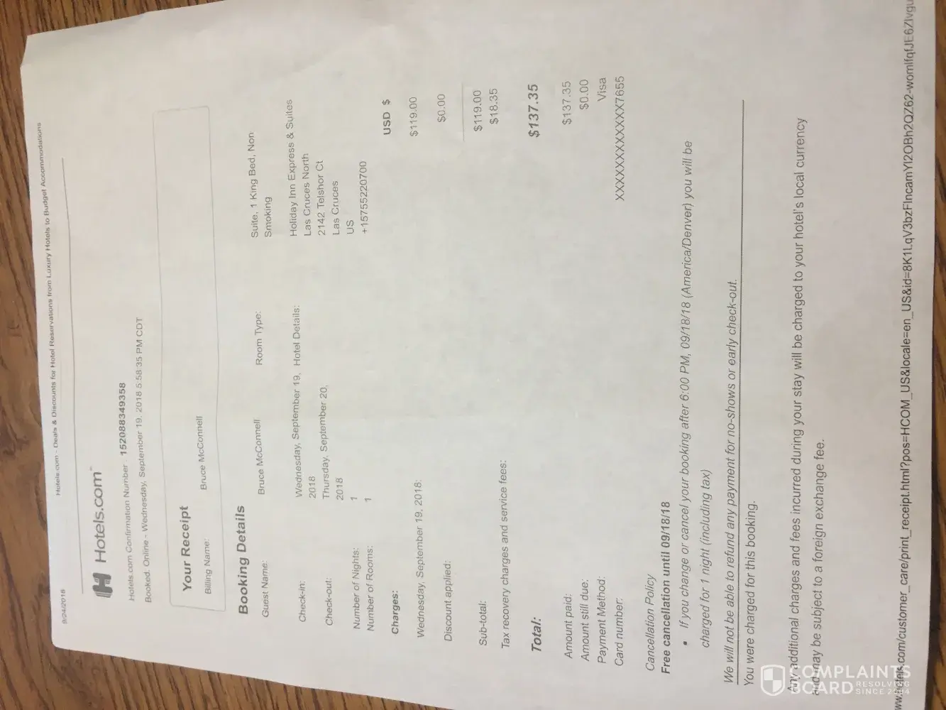 I would like to be reimbursed for all repair costs plus the cost of the hotel for a total of $626.85. (Note: On Monday 9/24/18 when I stopped in to the Les Schwab shop, Allen made copies of all the repair bills from Big O. I told Allen I didn't have the exact amount of the hotel bill but would get that to him on Tuesday morning, which I did. At that time Allen advised that Travis would only cover the costs of the tires and front end alignment but not the hotel).