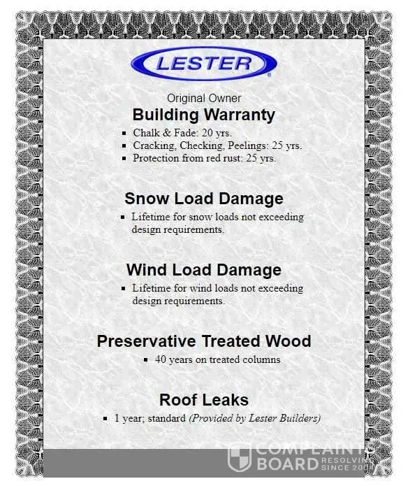 2 Lester Building Systems Complaints