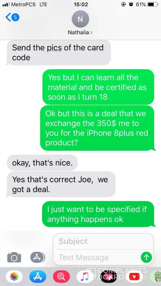 Hi my name is joe hernandez an d I made a deal with some one named (only first name given) Nathalia who SOLD me an iPhone 8 Plus product red I paid shipping included after asking for iTunes cards worth 375$ then just completely ignores my phone calls text and then her account says **ACCOUNT PENDING MODERATION** AFTER I've bought the product please help me contact her through anything! Her phone number is [protected] and I need to get in contact with her as soon as possible through email gmail or anything! Please please please help me!