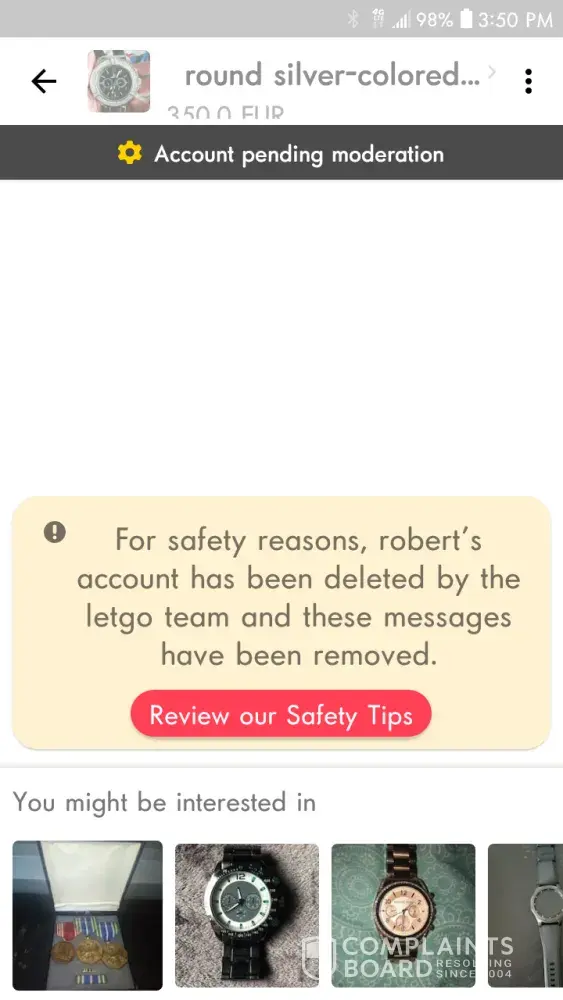 I sold this guy named Robert if thats his real name i sold him a 400 dollar watch i did everything i was suppose to do and i sent it to him we did the money through paypal and for some reason it wont come through and he has my watch but i have no money and i looked at our letgo conversation and this popped up what am i suppose to do