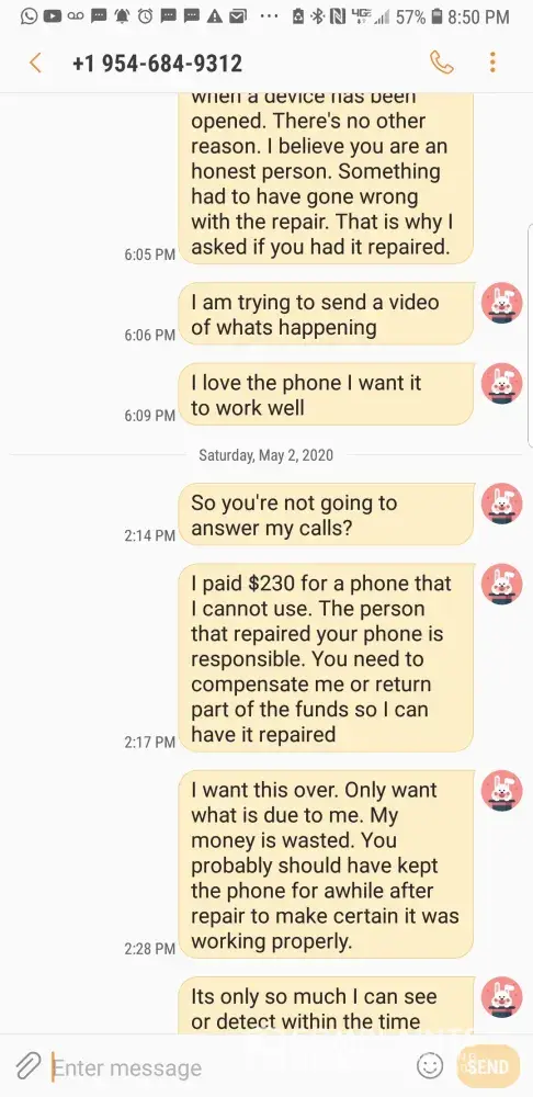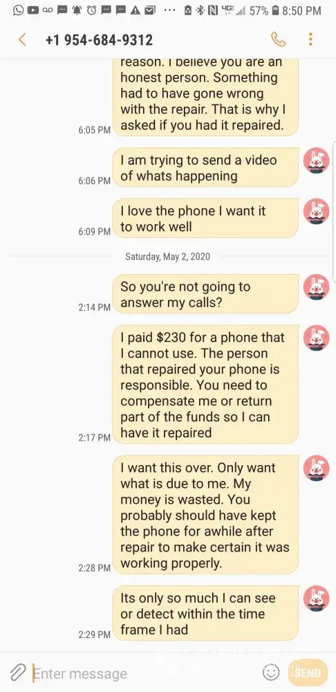 I had hoped to at least get some of my money back if not all or expected her to have the device repaired. I am angry and upset!