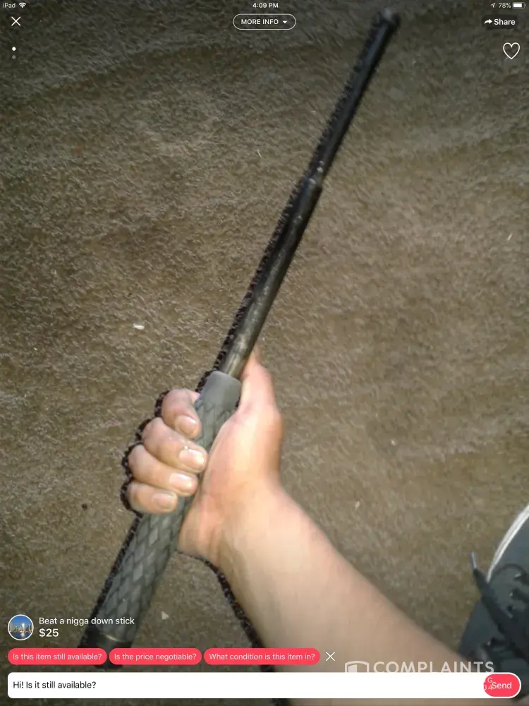 If your company intends for this app to be considered competitive with a site like eBay, I suggest you not only read what is posted on it but also show some level of responsibility about what you stand for how you allow it to be represented.