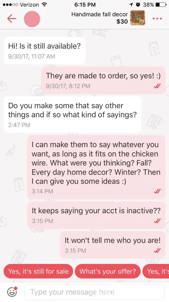 I have received a message on letgo from a potential "buyer" about a product I'm selling. However, this buyer's acct says "inactive". It doesn't show me who I'm dealing with. I want to make sure this is safe. It says the account is deleted, and I've asked the person why and explained that I cannot see who they are. Now they aren't responding after this. Any advice?