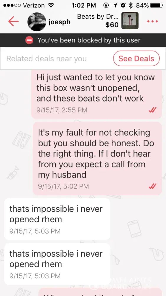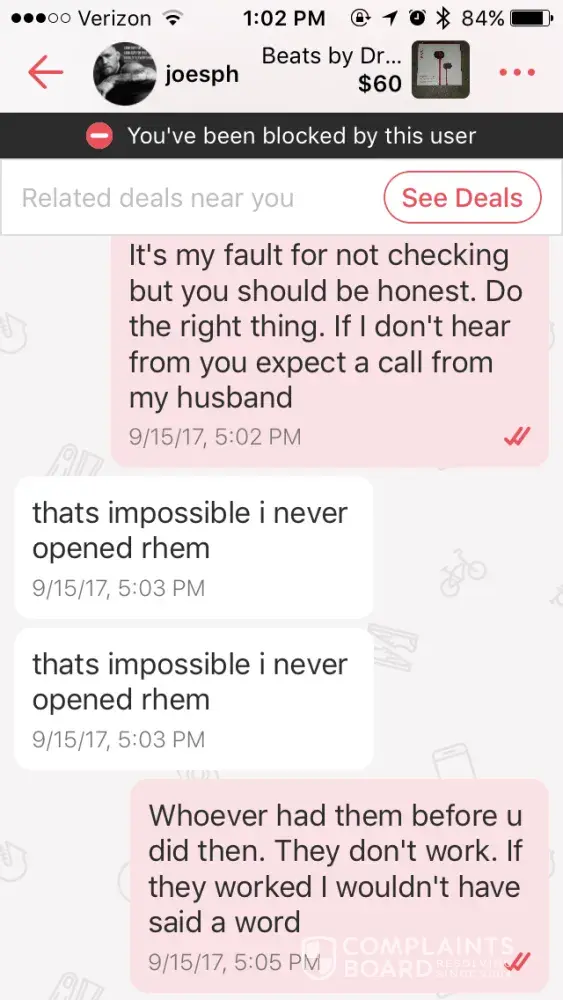 I sold a ps4 and he offered a check that looked real told me it was legit showed me proof of address and when i went to cash in the check the next day they told me that his account had been deactivated! I called him and he didnt answer and then after i called i get a notification on Letgo that he has blocked me and bad reviewed me! He doesnt answer and wont get back to me!
