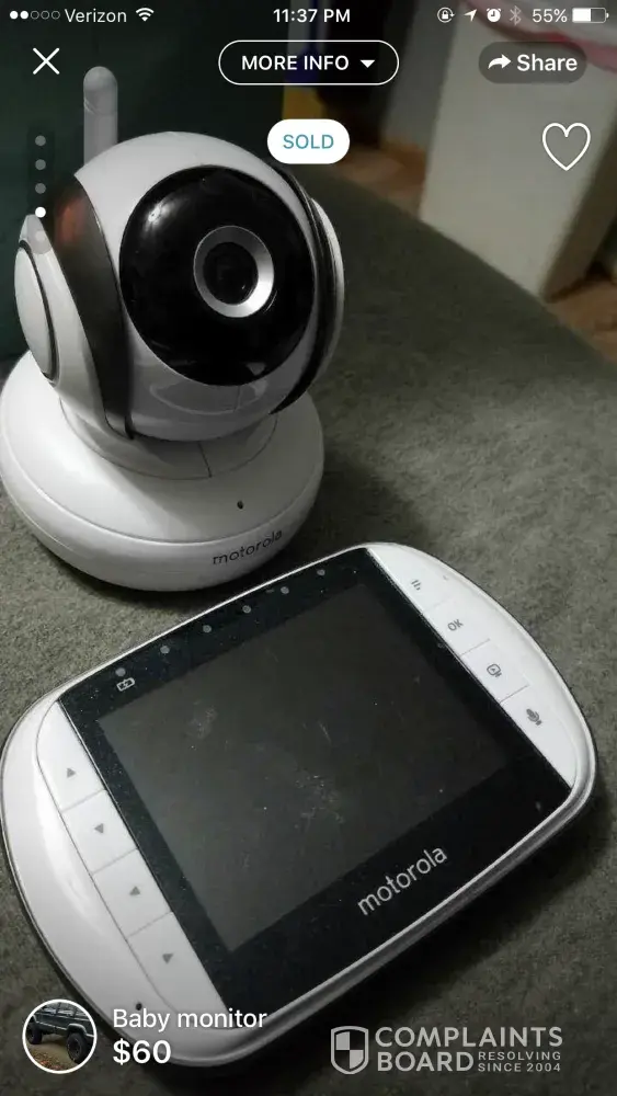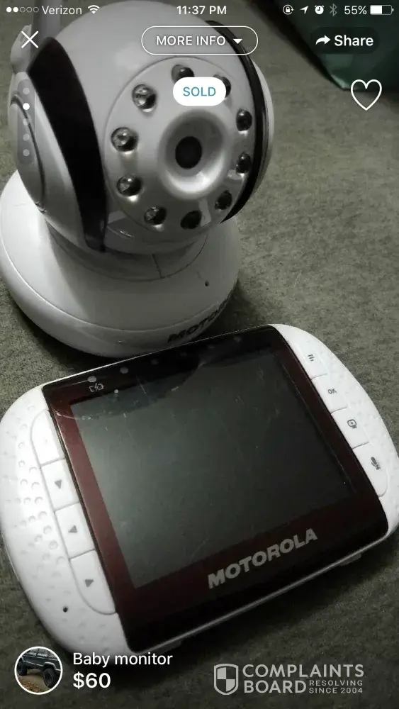 I purchased a baby monitor from a seller named kellie Ann her location says Dix Hills, USA but her exact address is 1230 Fairbanks ave bay shore. she posted two Motorola "wireless" baby monitors for sell for the price of $60. We negotiated the price to $40. I asked her before taking the 30 minute drive to her location what the condition of the monitors were and she told me "Perfect" so of course I believed her. I told her my husband was going to go pick it up around 7/7:30 pm and she told me that she was heading out to dinner at 7:15 pm so to get there before that. So of course my husband drove out there as soon as he could and got there right on time. She handed him the monitors and he asked her multiple times if they actually worked and she repeatedly said yes. He wasn't able to try them out because she was in the car heading out for "dinner" I'm assuming. So when he gets home we turn them on to try them out and one monitor turned on but I wasn't able to hear any noise and the other monitor didn't turn on at all. So I gave it some time I told my husband because they are used maybe we should let them charge a little. So we left them charging for about an hour and it made Zero change. Not only that but they were supposedly "wireless" and they weren't! So I messenged her letting her know the problem I'm having and she completely ignored me. So I messege her again and she argues back that she paid $300 for them and that they were working just fine a week ago. So by the time I got to reply her back she ends up blocking me. So now there's nothing I can do. She literally took my money. She doesn't deserve to sell on the app!