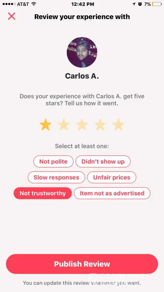 I believe something is really wrong with letgo.com's peer review system. reviews of others should be anonymous, otherwise purpose of genuine review of a seller/buyers' profile is defeated. - how the star of a seller/buyers profile is rated will not be based on truth, but rather response of how the other party has rated you.