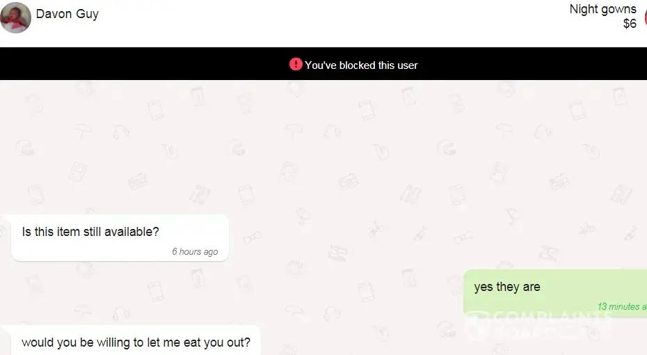 I have attached a copy of the e-mail. This seller should not be e-mail people back this stuff. I am trying to sell my items and all this site seems to be is another trashy craigslist. if this does not get handled it will never use this site again and report this site. THANK YOU!