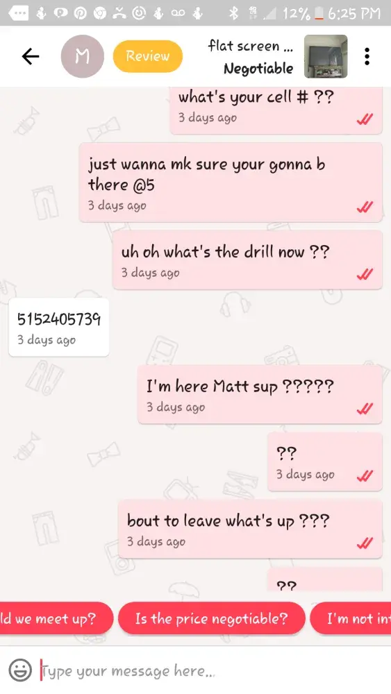 I tried to complete a deal with matt rodrigues and i thought all was good we made a deal then he disappears for 2 days then comes back aound out of the blue tells me he lost his phone then reaffirs the deal with me i go to get it and he dosent show or answer me or my phone calls then writes a bad review on my page, i included all messages, please help, thank you