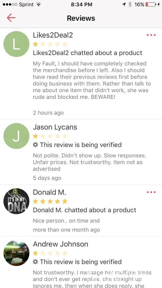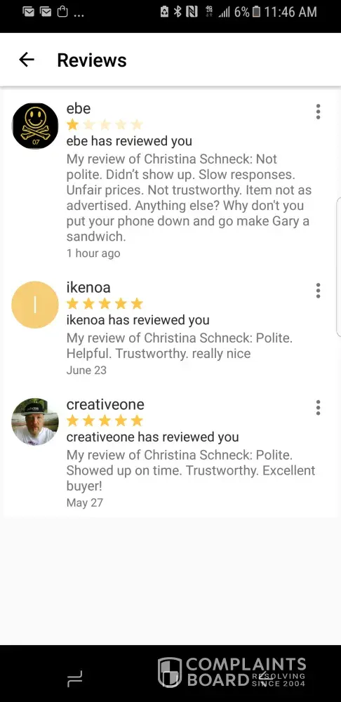 Letgo 3 of my reviews on my profile are fake