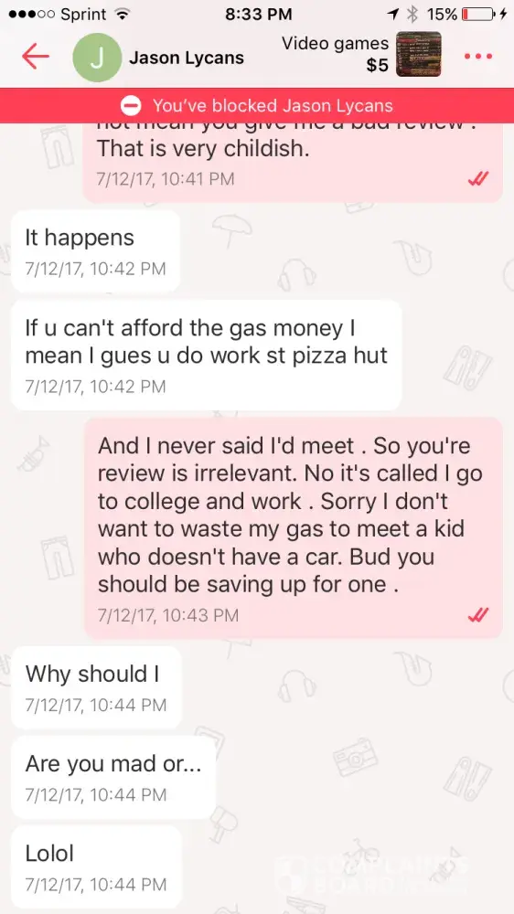 Two people messaged me and when I could not message them back they got mad and gave me a bad review saying I didn't show up and was rude and slow at replying when I had never said I'd meet them, one was a kid who wanted me to buy his stuff but contacted me about my stuff. Another was a 15 year old who wanted me to deliver a $5 game 40 minutes away and I told him no. The last review I got was a guy who updated his review(don't know how he did that) he lied to me about things I traded him he gave me a bunch of cases with no games in them and a bunch of consoles with no cords! We traded I gave him brand new in the box tablets and I even charged them and left them on so when we met he would see they work. He messaged me and said that I scammed him that the BRAND NEW tablets don't work. Then blocked me and gave me a horrible updated review. I'm a honest seller/trader I don't appreciate that letgo let's idiots review decent people just because they are slower at replying and the other person doesn't get what they want. I didn't leave the last guy a bad review I gave him 5 stars even though he screwed me over with two tablets that cost $146 and two more that cost $100 each . It's kind of funny that I have great reviews and then 3 bad ones. Doesn't make sense . I don't think people should be allowed to update their review because now I can't change my review on his item. Please remove these reviews I have reported all of them .