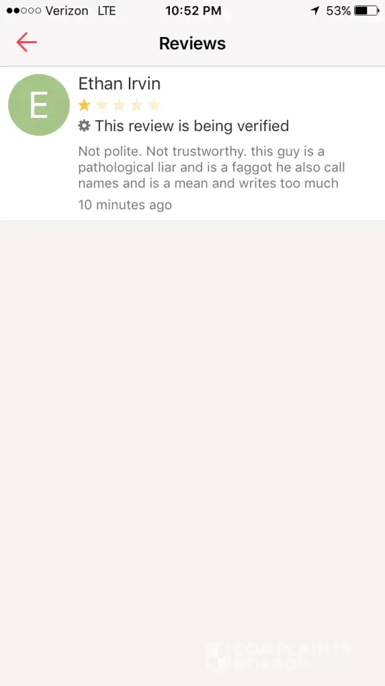 Another user (Ethan Irvin) has been attacking me and made a false review of me. This review contains false information. He was using vulgar language and was name calling. Due to this review, I will now have a bad image in other people's eyes. In the past, I have had very good conversations with many great people. This person went overboard when I told him I would appreciate a response on whether he was still interested in my product or not. I have nothing but respect for the people who contact me. I would like this review to be removed from my account if at all possible. Thank You