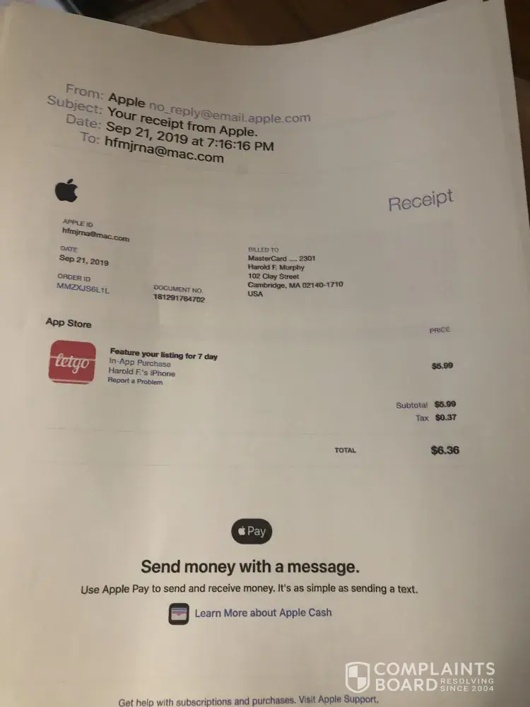 on september 21, 2019 I paid via apple a request to feature for seven days