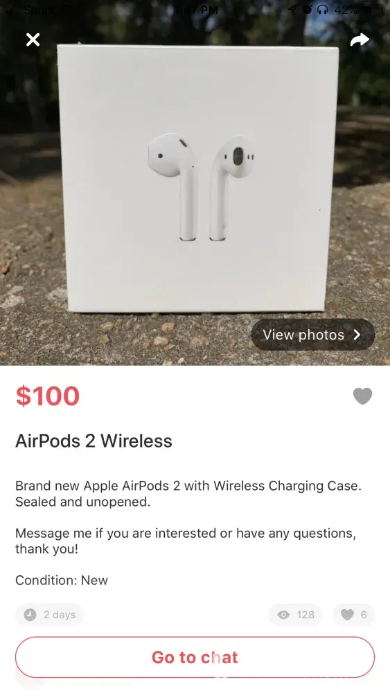 My friend bought "AirPods" for $100 and took them to the Apple store and they said the AirPods were fake. I request a full refund and for that person to be taken off of LetGo. They were selling more than one because he did not label it as "sold" when my friend bought it, and when I messaged and asked for them he still said they were available, confirming even more that they were fake.