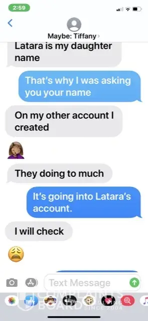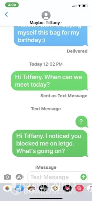 I tried to buy Louis Vuitton from Tiffany Wilson. She said she is out of town until Saturday morning. In order for her to hold it for me, I need to give her deposit of $50. She said she will meet me at Louis Vuitton store to make sure her bag is real. I gave her $50 dollars through Apple Pay. Saturday I texted her and called her but she never responded. This is a wire fraud. You guys should do something about this. Her phone number is 202-280-9192