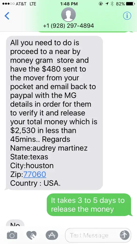 This lady posted a Diningroom set for sale and we agreed that I would by it and the price included delivery. For 10 days we were texting and I even tried to meet up with her to give her a deposit.