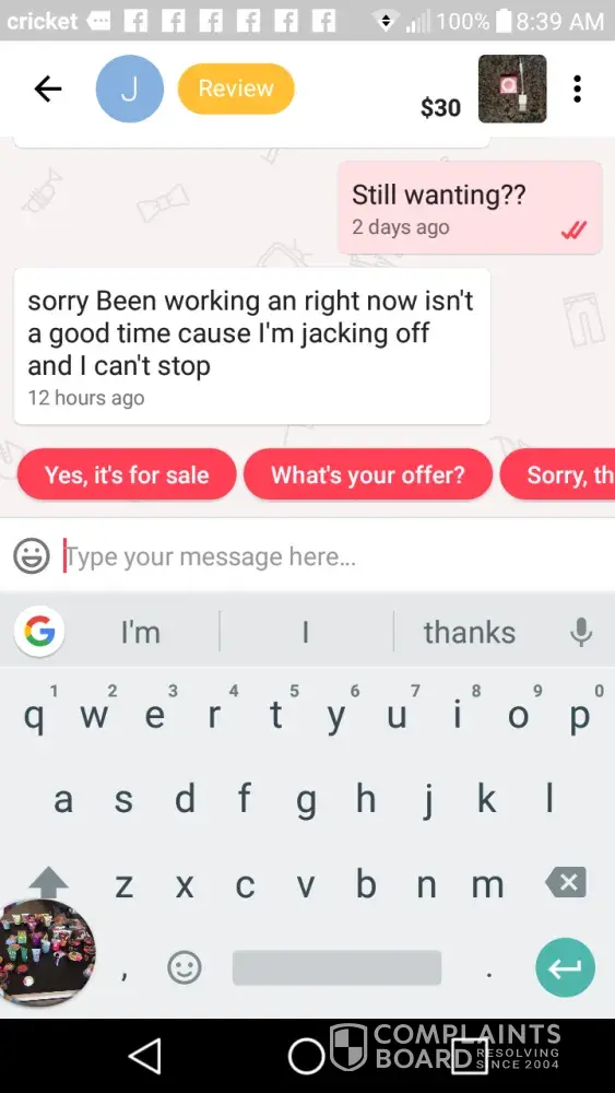 I was selling a vanity light fixture and a man or woman wanted my number to talk or text. So I gave it to him and he is trying to get people to give their names numbers and address. He is saying he will have his secretary will send a cashiers check or money order plus $50.00 to hold the item for him. I'm sure he is trying to scam people on the site and new young users may think that's how it's supposed to be done. The number he texted me from is [protected]. I don't usually complain but a person like that dicusses me. He trying to take advantage of the new young users or the old users that don't know not to give out that kind of info. That's all I'm done complaining. He's trash and should not be allowed in your site