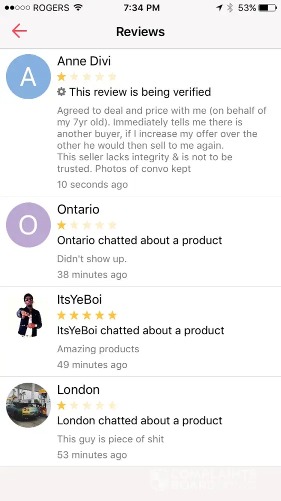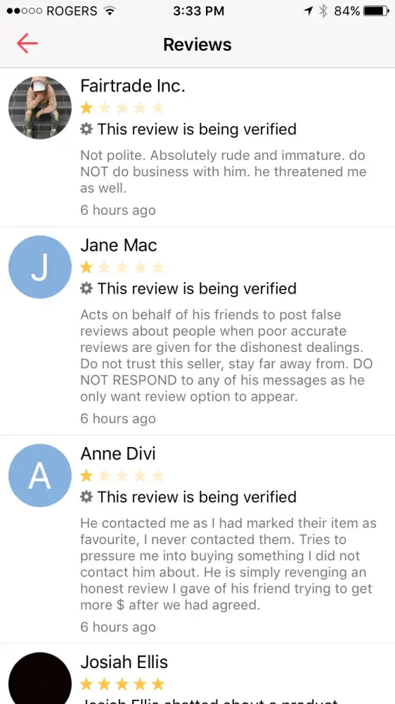 I have been giving bad reviews to people who have chatted me up about wanting to buy a product(s) Im selling. Buyers promise to meet me up but never show, chat me up about the item they really really really want and then go silent for a week or more, say that they dont have the money and are waiting for a relative to give them the money (which I politely waited a week for) which lead to nothing but silence and just simply saying Is this still available and not following through. All these people who have done this to me I have given bad reviews because of the games they like to play. One has since then gotten mad and wrote a retaliatory review because she "was on vacation" and she didnt even bother telling me that, so she just went silent like the rest. Here is the proof of the ### Im having to deal with.