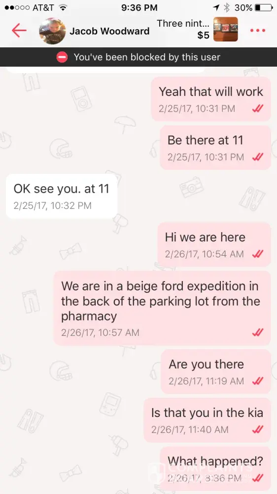 I was supposed to meet Lee Hinson to buy a holster he was selling on Letgo. Our meeting time was 3/2/2017 at 9:30. I messaged him around 9:18 to let him know I was on the way, he read the message but never responded, nor did he show up. This was a waste of time and gas for me, I traveled from at least 25 miles away. Letgo needs to look into this and ban him from selling on Letgo for a while.