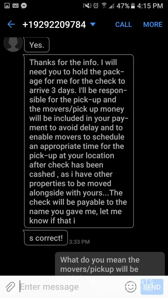 The account 'Clary Kenneth' told me 'offer $80' and I said 'ok can we meet tomorrow night' she stated that she was very interested in this item and that her husband Keith would love to purchase the product and proceeded to give me his number [protected]. I texted 'Keith' and I will place that conversation in the photo upload section. The pictures should be in order from left to right.