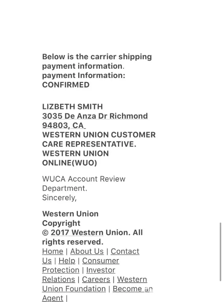 I had a buyer name Liz smith on letgo app. Sold her my Kylie Jenner lip kit and did not pay back. She use a fake western union account to make it seem like she paid already. She said that she wanted to give to to her little sister and sent me an address that seems pretty real. I put her information below. I am hoping no one else get the scam like this . Please put her as a scam and block her for ever buying or selling to anyone.