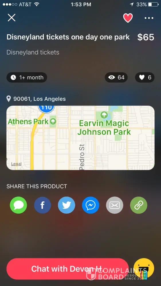 Letgo earns a 1.1-star rating from 8 reviews and 1143 complaints, showing that the majority of users are dissatisfied with buying and selling experiences.