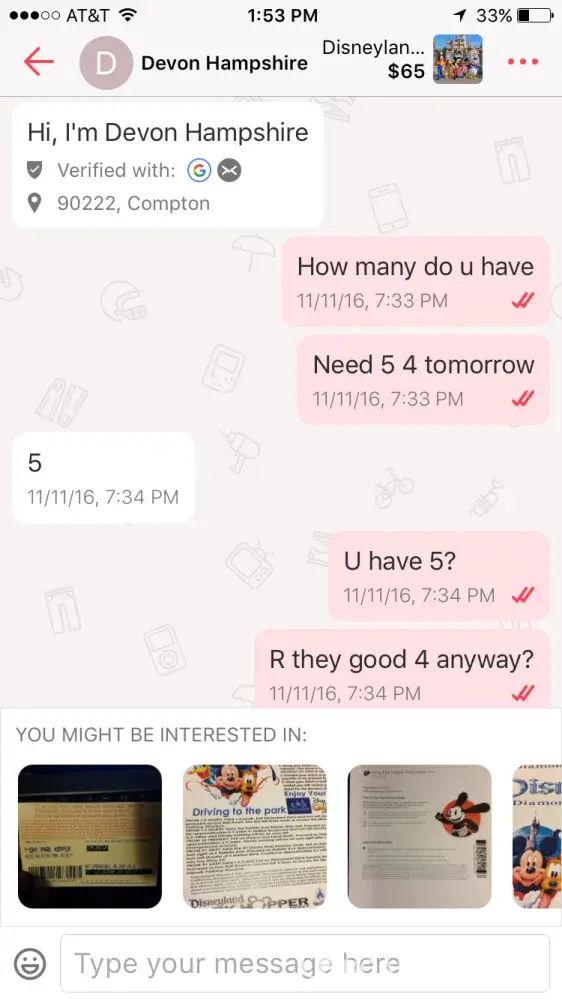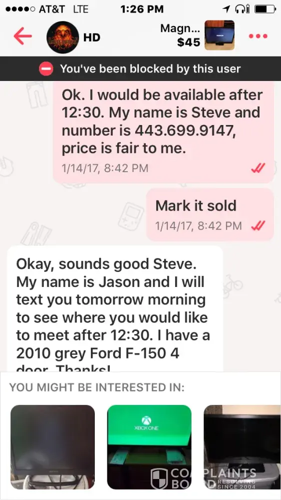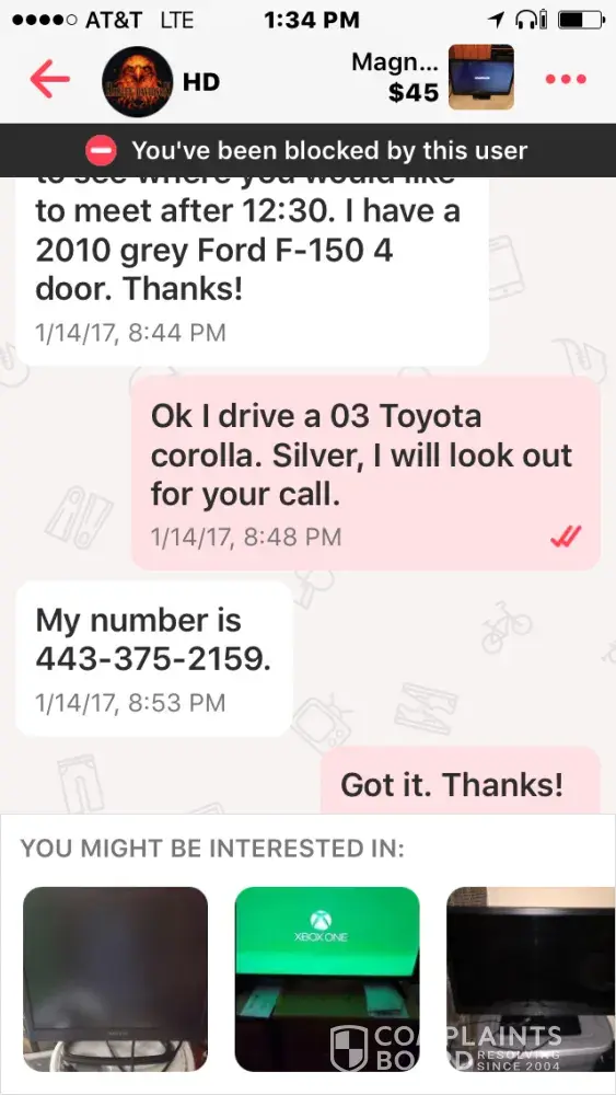 Hello, my name is kylie dvorak and I just wanted your team to be aware of a scammer on LetGo. He messaged me under the user "Blockus" and scammed me of over $100. He creates fake PayPal accounts in order to accomplish this and has now completely lost contact with me about this issue once I realized what he was doing. In no way is this Letgos fault, however please delete his account or watch out for others like him.