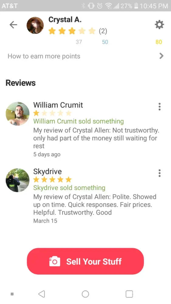 I bought a couch off of mr. Crumit and he told me not to worry about having all the money right now that I could pay the rest to him at a later date and said that I am not trust worthy he doesn't even know me to even know that and hasn't even given me the time he stated for me to pay the remainder that I owe him before leaving such a negative review not to mention when he brought the couch into my home he showed up late at night not to mention he busted my whole ceiling by knocking all my ceiling tile from the ceiling into the floor I want this negative review moved from my account immediately i can seen screen shots of all messages between me and mr. Crumit if need be