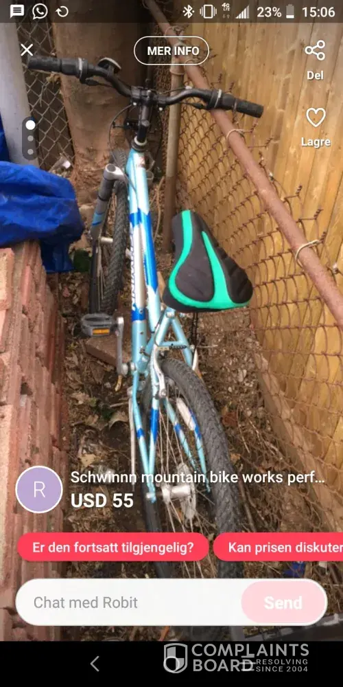 Person who has the nickname 'Robit' in letgo is selling my stolen bike - schwinn mountain bike - which is a 26inch one. He even added the note 'Too big for my small sister'. When I contacted he took the add out but this person is selling stolen goods! He is well aware that it is stolen. I even reported to the local police. This person shouldn't be allowed to do that and user should be warned about it.