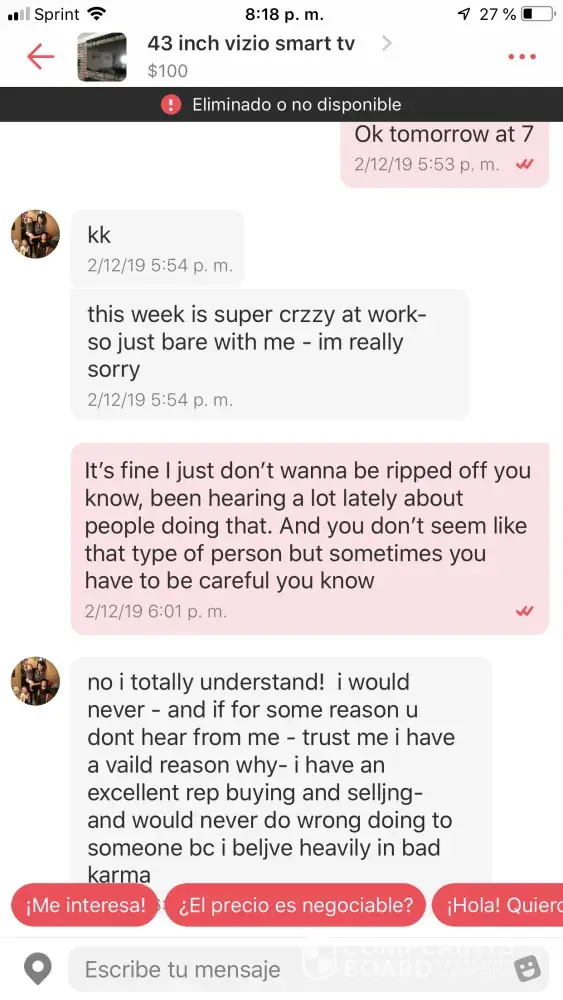 Letgo scammer - cashier's check/unethical request & behavior on payment activity