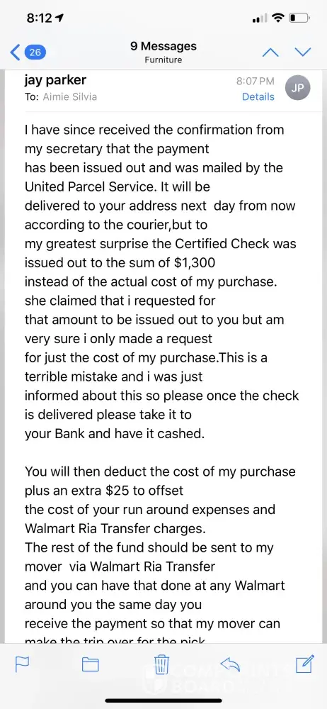 the man agreed to pay me after i shipped it and afterwards managed to change his location and name through the app and has stopped responding so there is no way of getting in contact with him and he still hasn't paid me
