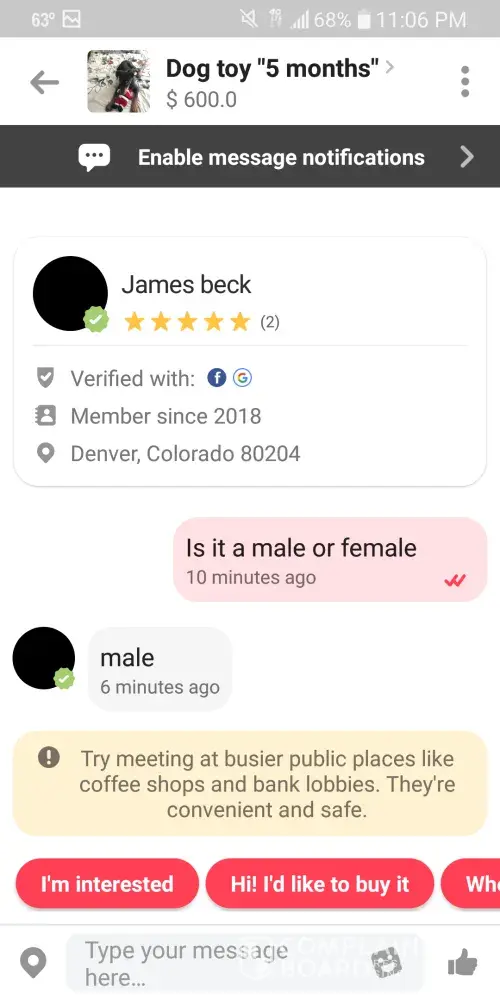 This site is not the best place to buy anything. Most of the items I bought on Letgo were in a terrible condition even though everything looked nice on the website.