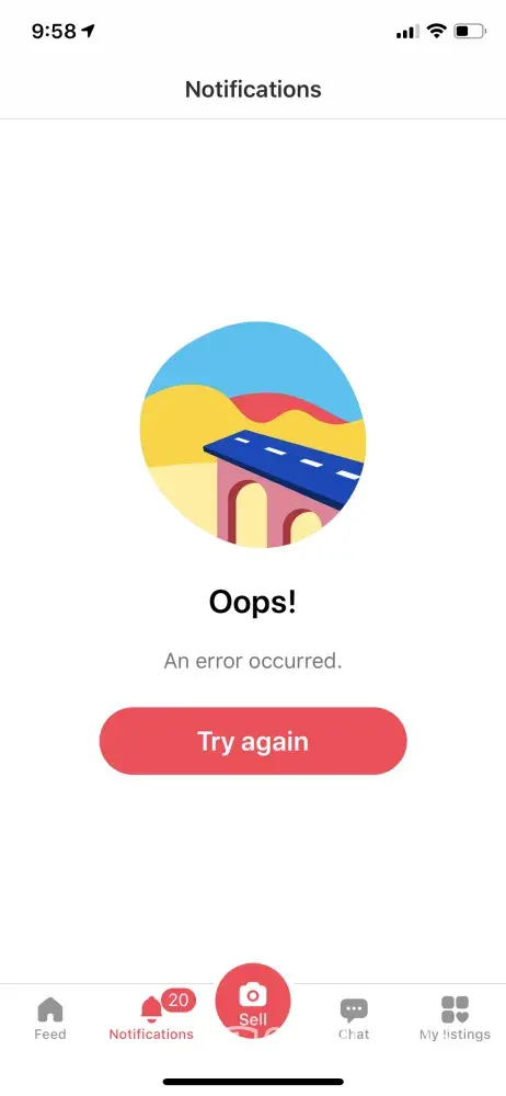 I can't clear or read my notifications it just says oops error try again