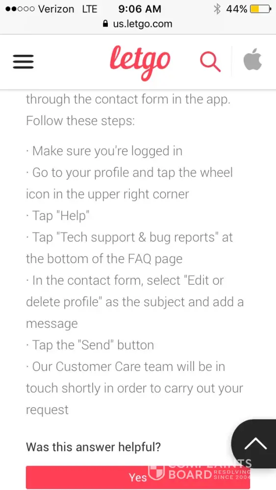 The let go app instructs you to delete the account via the website. The website requires users to download the app and doesn't allow any way to delete the application from your smartphone or mobile device. They require an email sent through "tech &a bug" which is totally misleading.